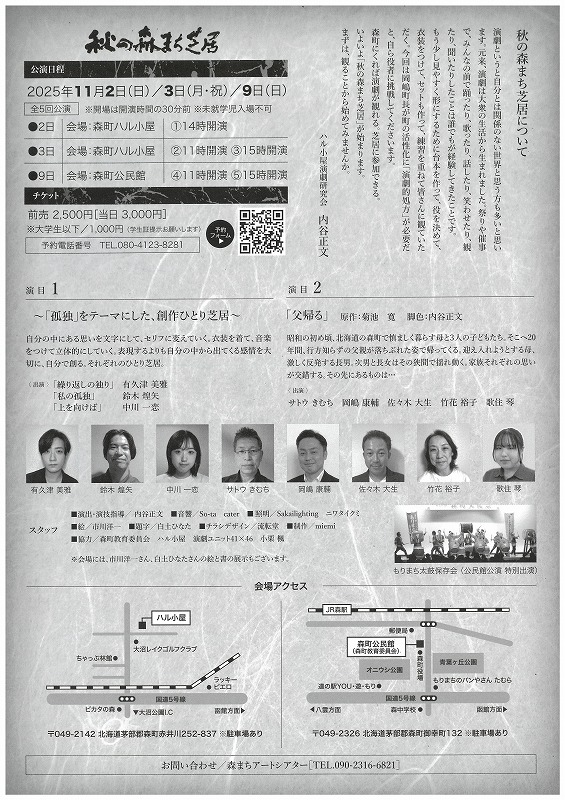 茅部郡森町にて「秋の森まち芝居」公演が行われます。