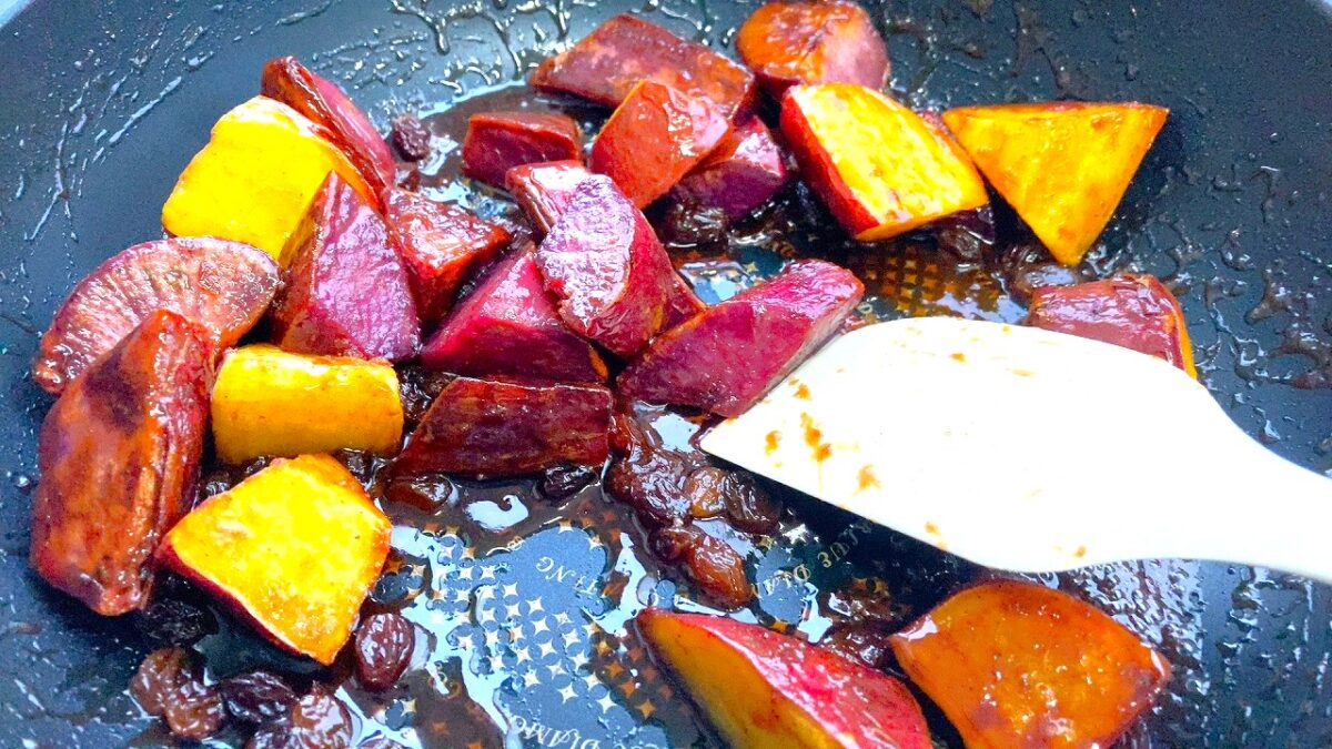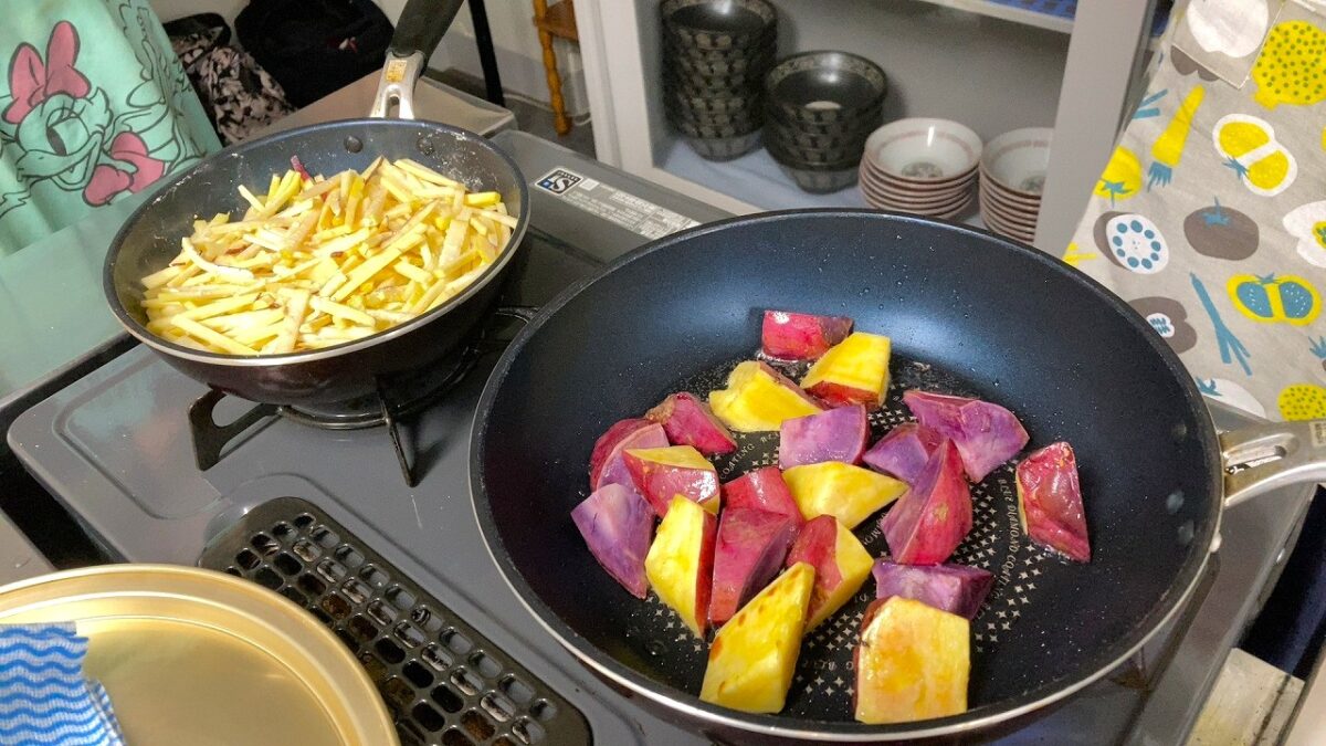 今回はさつまいもを使った『スパイス大学芋風』『甘じょっぱいが癖になるお芋ガレット』の2品を作りました。