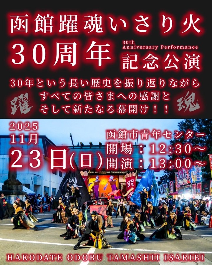 青年センターで活動しているYOSAKOIチーム・函館躍魂いさり火が、結成30周年の記念公演を開催します。