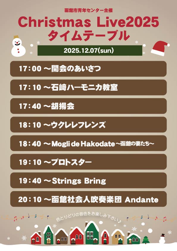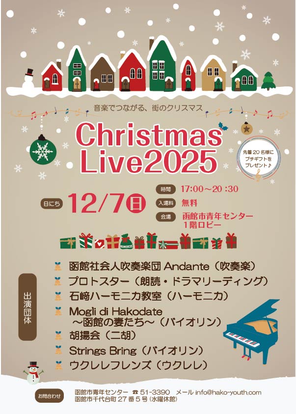 12/7㈰に、青年センターにてクリスマスライブを開催することが決定しました!