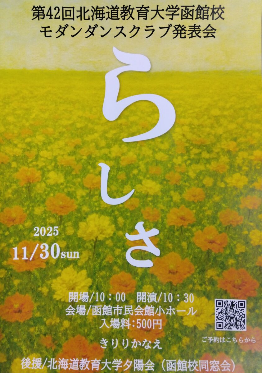 青年センターの青年団体である北海道教育大学函館校モダンダンスクラブの発表会のお知らせです。