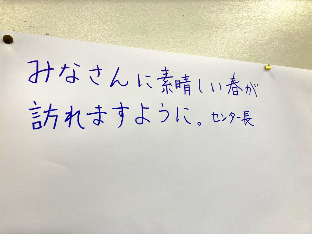 ↓センター長より応援のメッセージを書いていただきました。