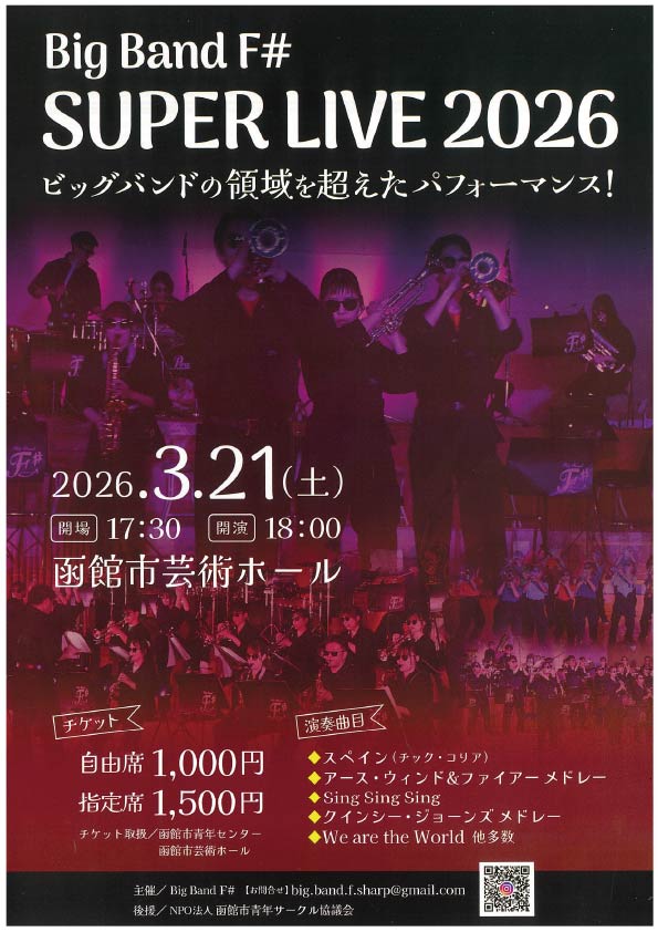 【チケット取扱中】Big Band F# SUPER LIVE 2026 が芸術ホールで開催されます!