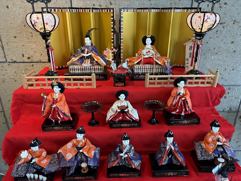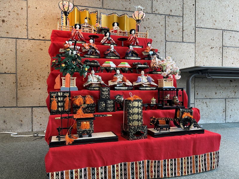この伝統的な7段飾りのひな人形は青年センターのロビーにて3/7まで展示予定です。