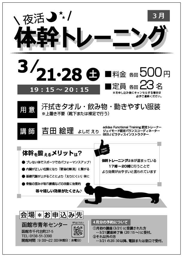 夜活!体幹トレーニング 3月教室