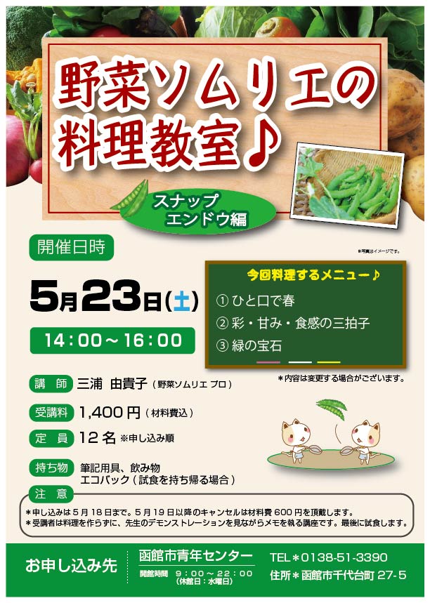 野菜ソムリエの料理教室♪~ スナップエンドウ編~